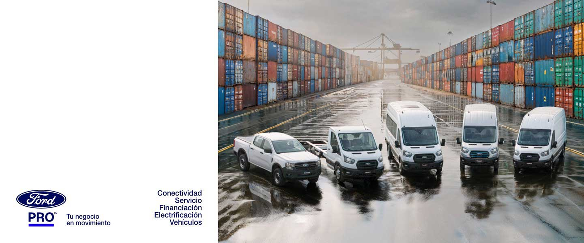 Ford Pro es un ecosistema que incluye pilares de productos y servicios, diseñados para satisfacer las necesidades del cliente comercial. Toda la innovación, tecnología y conectividad de Ford Pro ayudarán a acelerar la productividad del cliente comercial y a mantener su negocio siempre en movimiento.